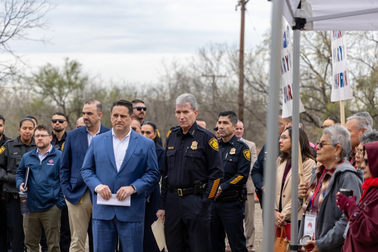 City Manager Erik Walsh and San Antonio Police Chief William McManus spoke Monday about the yearslong effort by District 3 councilmembers to secure a police substation for the area. Credit: Diego Medel / San Antonio Report