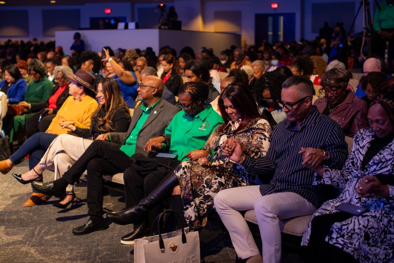 Attendees pray at New Creation Christian Fellowship on January 11. Credit: Vincent Reyna for the San Antonio Report