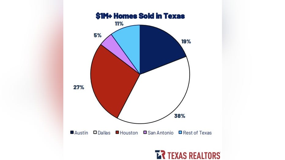 The rest of Texas accounted for 11% of the million-dollar homes sold, equating to 1,535 homes sold in that price range.