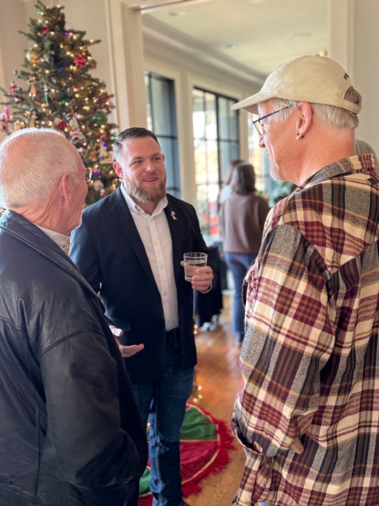 Taylor Rehmet speaks with potential voters at a political event. (Courtesy photo | Taylor for Texas Campaign)