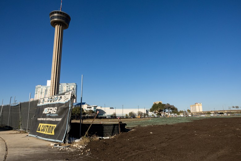 The empty lot at 801 E. Cesar Chavez Blvd. which the former UTSA Institute of Texan Cultures occupied on Jan. 6, 2026. Credit: Amber Esparza / San Antonio Report