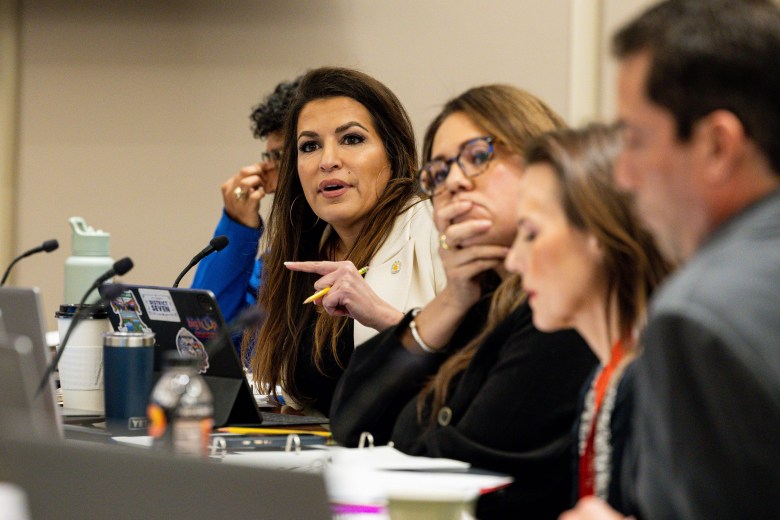 Councilwoman Marina Alderete Gavito (D7) asks questions after a presentation from Ben Gorzell on the city’s coming sports and entertainment district during a council meeting at City Hall on Wednesday. Credit: Amber Esparza / San Antonio Report