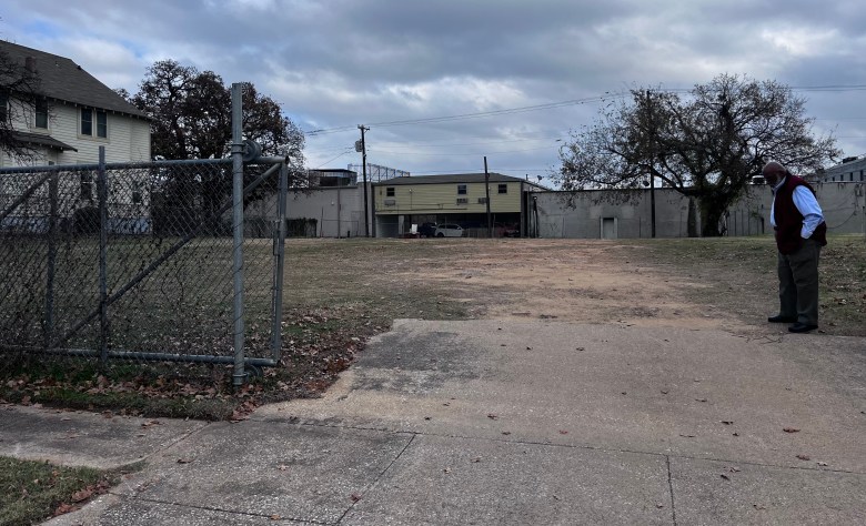 Mr. T.A. Sneed (right) stands at 1814 South Blvd, owned by Cornerstone Baptist Church. To the left, stands his light yellow house. Credit: SiSi Encarnacion
