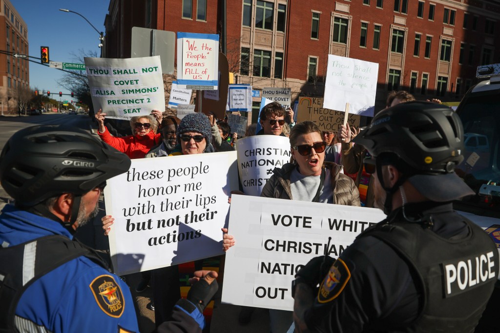 Krause said he was glad to see peaceful protestors at the ceremony but denied the allegation of promoting Christian nationalism.