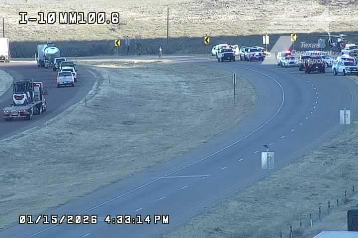 Update (5:22 PM): TXDOT says that a detour has been set up at mile marker 99 to Sierra Blanca. The clearing time is now listed at one hour.