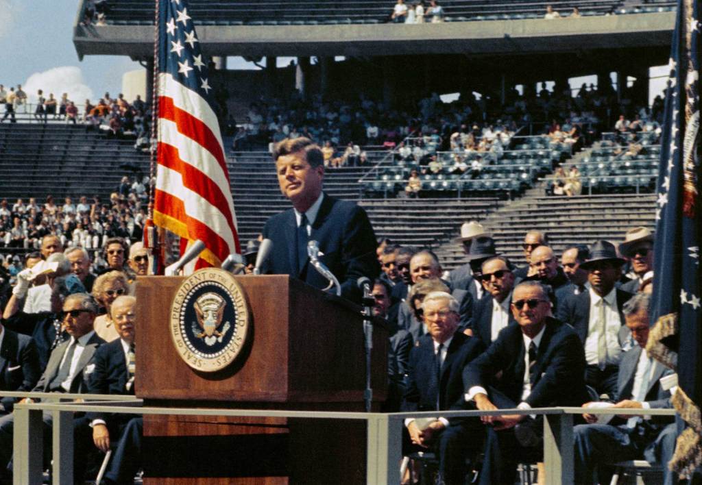 President Kennedy gives his ‘We choose to go to the Moon’ speech at Rice University, Houston in 1962 [Getty Images]