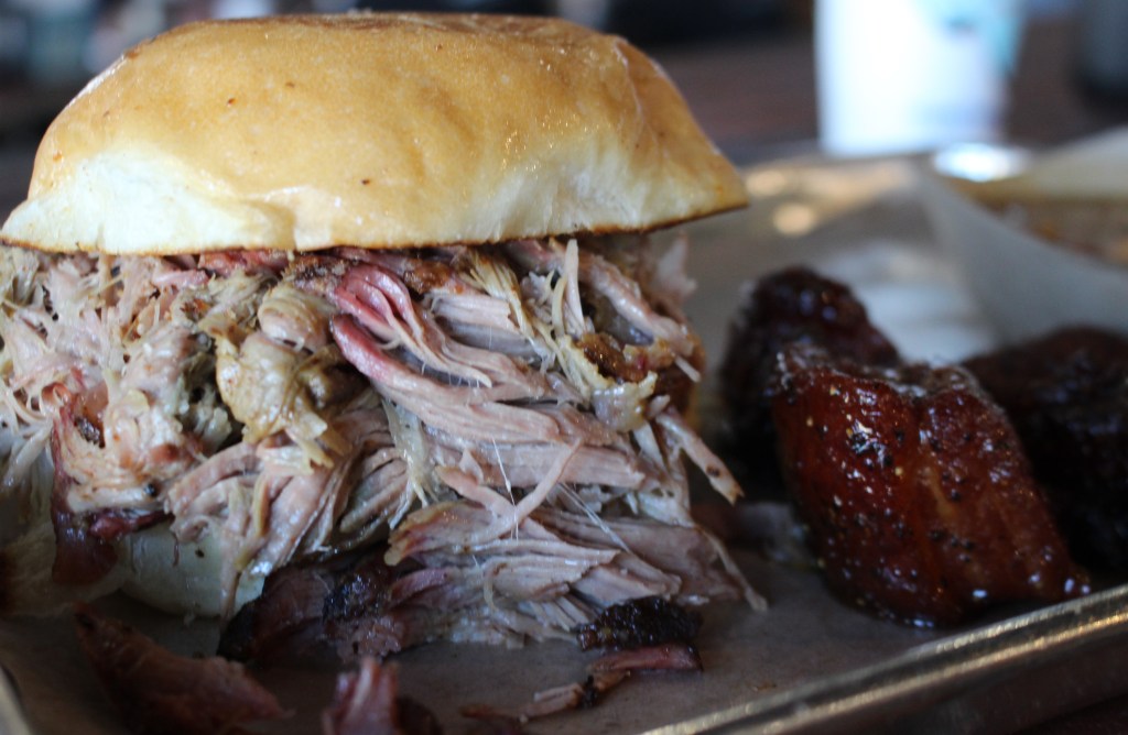 Heim Barbecue sells its pulled pork sandwich for $13.49. (Scott Nishimura | Fort Worth Report)