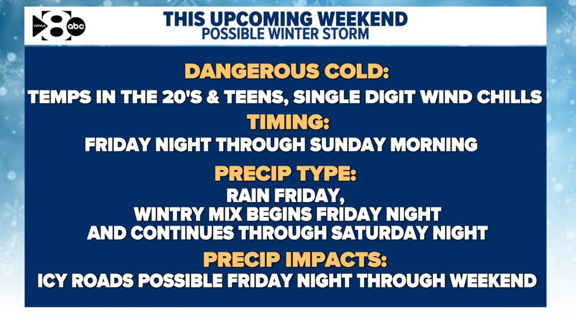 During the day Saturday, the precipitation falling may still be fighting through a shallow layer of warm air aloft. This precipitation would fall as a wintry mix that could include freezing rain and sleet.