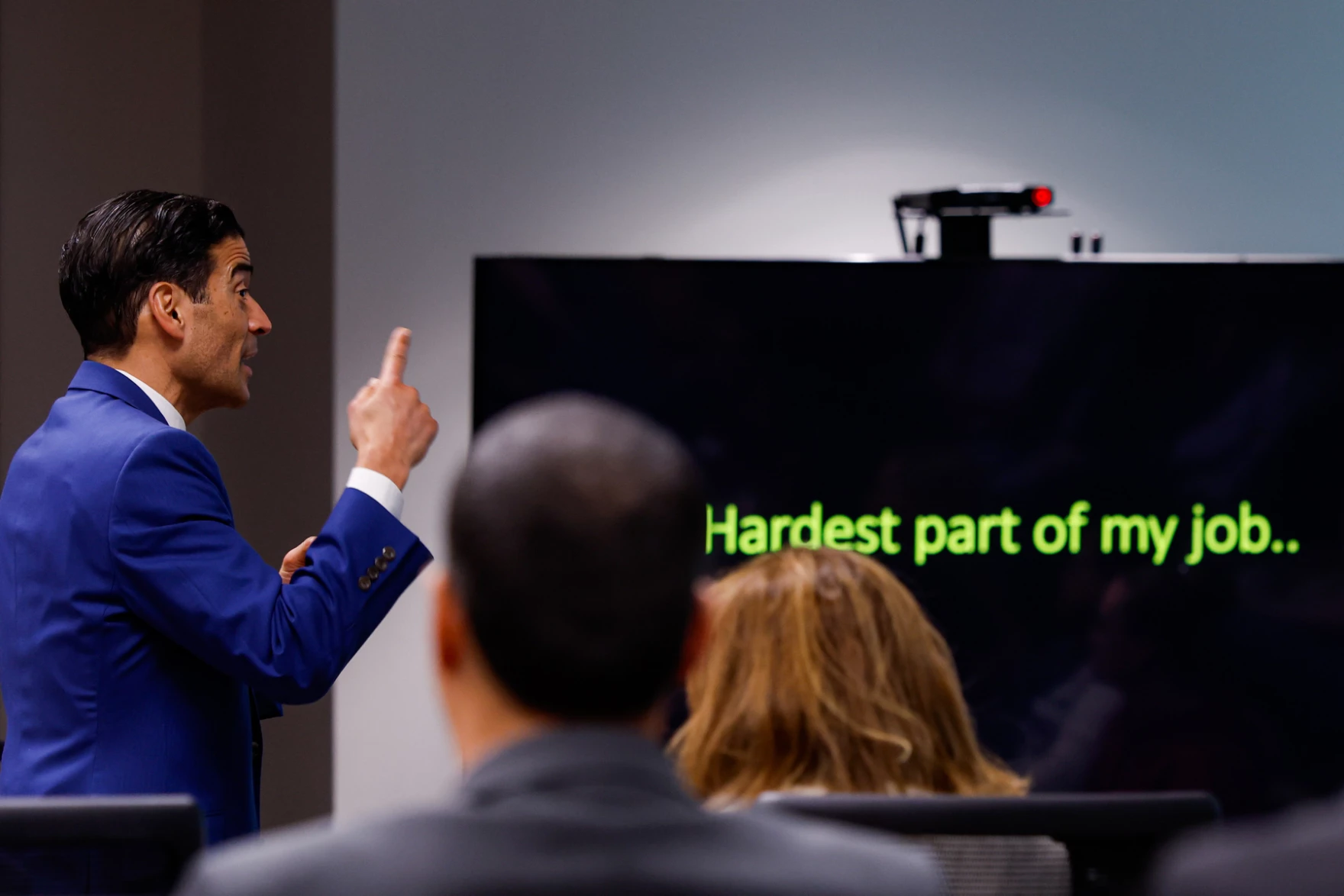 Defense attorney Nico LaHood delivers a closing statement to the jury on the 11th day of the trial for former Uvalde school district police officer Adrian Gonzales at the Nueces County Courthouse on Wednesday, Jan. 21, 2026, in Corpus Christi, Texas.
