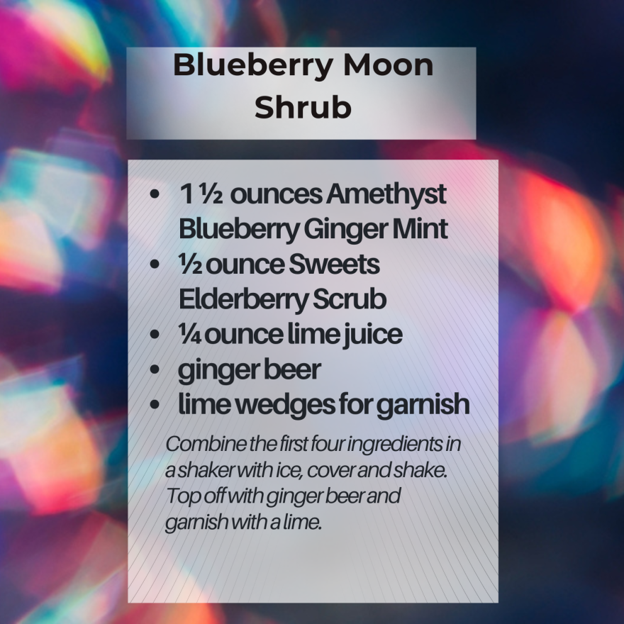 Up first was the Blueberry Moon Shrub, a fizzy, fruity-tasting drink made up of a blueberry ginger mint botanical spirit, paired with an elderberry shrub, fresh lime juice and a nice ginger beer.