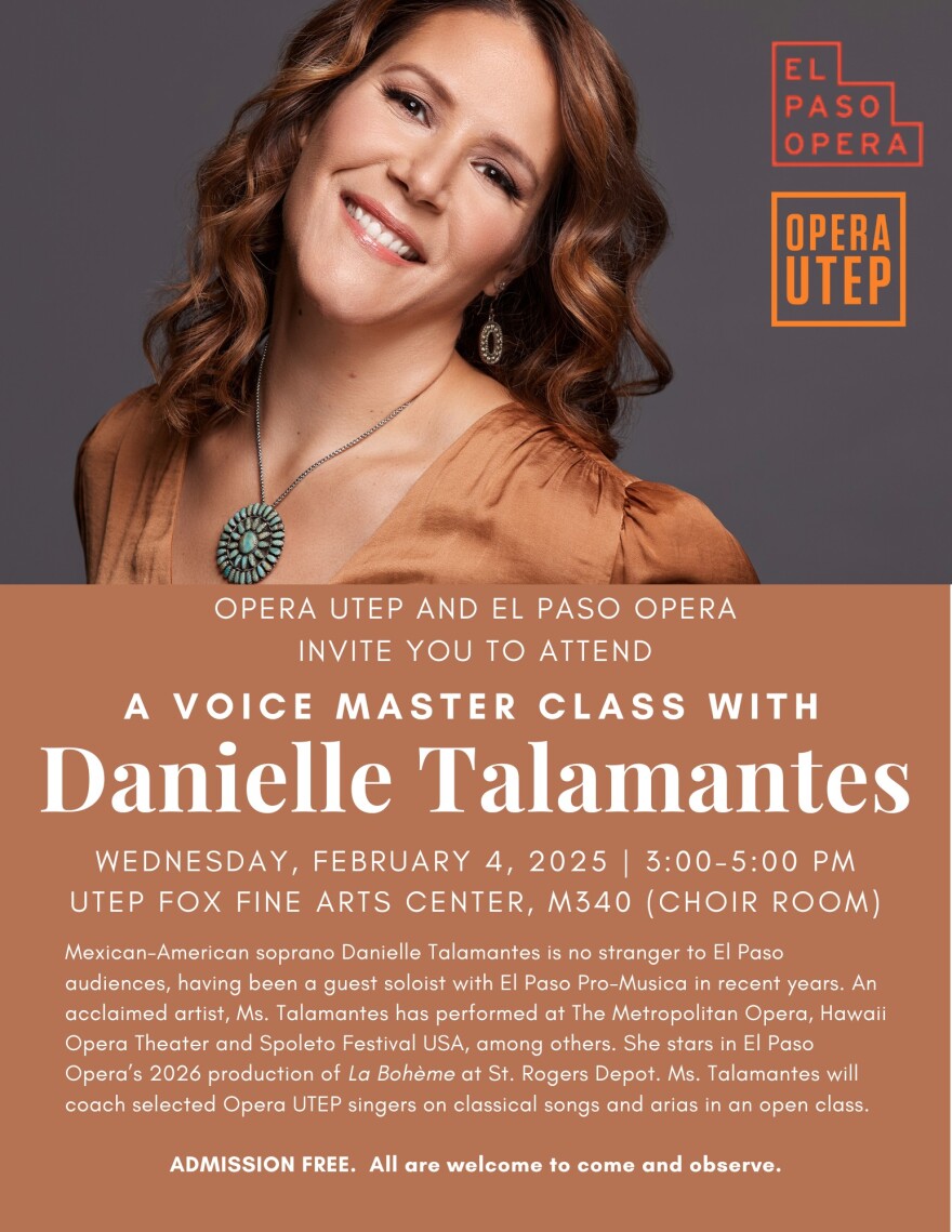 Five performances will be presented between January 30 and February 7. A master class with Danielle Talamantes takes place on Feb. 4 at UTEP Fox Fine Arts Recital Hall at 3 p.m. and is open to the public.