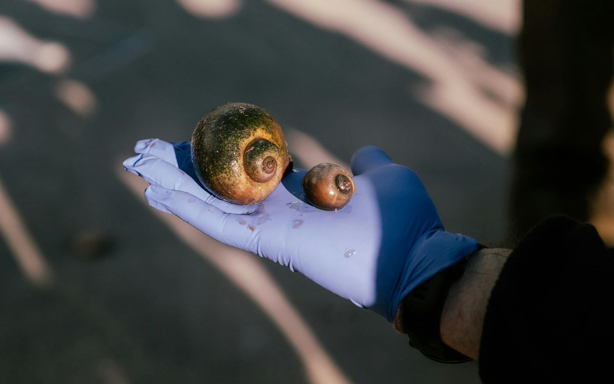 The giant apple snail is an invasive species that the River Authority is attempting to control and remove from the river.