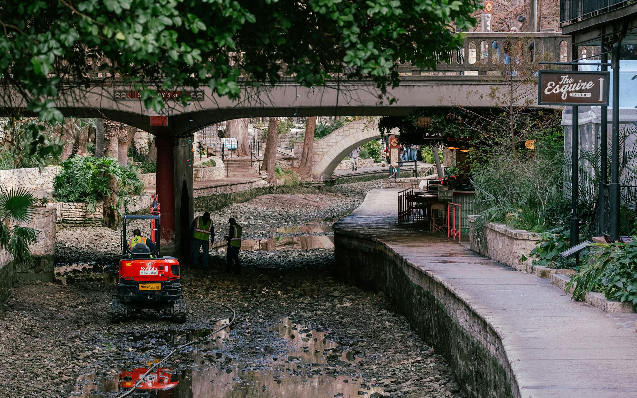 San Antonio temporarily drains the downtown portion of the river every couple of years as part of its River Walk Maintenance Program. The event has become notable for the items the team pulls out of the water—phones, laptops, folding chairs, Mardi Gras beads, bike parts, scooters. The river draining is a detailed joint effort between the City of San Antonio’s Center City Development & Operations department, its Public Works department, and the San Antonio River Authority. This year, throughout the week of January 11–19, crews from the different departments worked in the drained sections of the river to remove trash, debris, and sediment buildup and inspect and make repairs as necessary to the river walls.