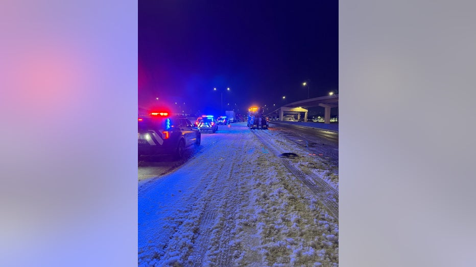 Earlier Wednesday, FOX 4 reporter Payton May observed three 18-wheelers become stuck on the I-30 service roads within a matter of minutes. The service roads were reported to be in worse condition than the main lanes due to the steep incline and heavy ice. May also witnessed four vehicles strike barriers after sliding on black ice during her morning commute.