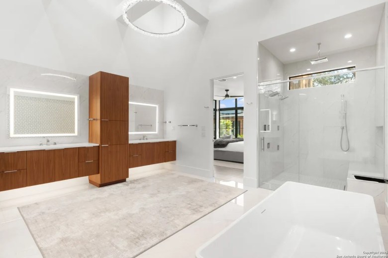 The sprawling space, constructed in 2023, is the definition of modern luxury, with soaring ceilings and sleek finishes throughout.