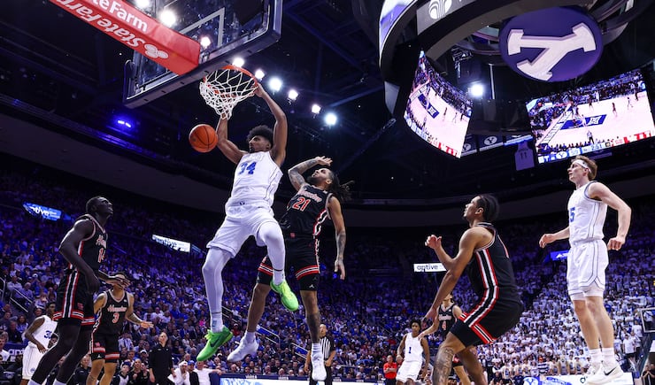 BYU forward AJ Dybantsa (3) dives on a loose ball during the second half of an NCAA basketball game against the Houston Cougars at the Marriott Center in Provo on Saturday, Feb. 7, 2026. | Rio Giancarlo, Deseret News BYU forward AJ Dybantsa (3) shoots during the second half of an NCAA basketball game against the Houston Cougars at the Marriott Center in Provo on Saturday, Feb. 7, 2026. | Rio Giancarlo, Deseret News BYU forward AJ Dybantsa (3) dunks during the second half of an NCAA basketball game against the Houston Cougars at the Marriott Center in Provo on Saturday, Feb. 7, 2026. | Rio Giancarlo, Deseret News The Houston Cougars celebrate during a stoppage after scoring during the second half of an NCAA basketball game against BYU at the Marriott Center in Provo on Saturday, Feb. 7, 2026. | Rio Giancarlo, Deseret News Houston Cougars head coach Kelvin Sampson argues with a referee during the second half of an NCAA basketball game against BYU at the Marriott Center in Provo on Saturday, Feb. 7, 2026. | Rio Giancarlo, Deseret News BYU head coach Kevin Young reacts to a basket by the Houston Cougars during the second half of an NCAA basketball game at the Marriott Center in Provo on Saturday, Feb. 7, 2026. | Rio Giancarlo, Deseret News BYU fans react to a call during the second half of an NCAA basketball game against the Houston Cougars at the Marriott Center in Provo on Saturday, Feb. 7, 2026. | Rio Giancarlo, Deseret News BYU center Abdullah Ahmed (34) dunks against Houston Cougars guard Emanuel Sharp (21) during the second half of an NCAA basketball game at the Marriott Center in Provo on Saturday, Feb. 7, 2026. | Rio Giancarlo, Deseret News BYU forward AJ Dybantsa (3) looks on as he waits for the ball to be inbounded during the second half of an NCAA basketball game against the Houston Cougars at the Marriott Center in Provo on Saturday, Feb. 7, 2026. | Rio Giancarlo, Deseret News BYU guard Richie Saunders (15) grabs a rebound over Houston Cougars guard Emanuel Sharp (21) during the second half of an NCAA basketball game at the Marriott Center in Provo on Saturday, Feb. 7, 2026. | Rio Giancarlo, Deseret News BYU guard Robert Wright III (1) is fouled by Houston Cougars guard Emanuel Sharp (21) as he drives to the basket during the first half of an NCAA basketball game at the Marriott Center in Provo on Saturday, Feb. 7, 2026. | Rio Giancarlo, Deseret News BYU forward AJ Dybantsa (3) is fouled by Houston Cougars guard Kingston Flemings (4) as he drives to the basket during the first half of an NCAA basketball game at the Marriott Center in Provo on Saturday, Feb. 7, 2026. | Rio Giancarlo, Deseret News BYU center Keba Keita (13) reacts to a call during the second half of an NCAA basketball game against the Houston Cougars at the Marriott Center in Provo on Saturday, Feb. 7, 2026. | Rio Giancarlo, Deseret News BYU guard Richie Saunders (15) drives to the basket against Houston Cougars guard Ramon Walker Jr. (3) during the second half of an NCAA basketball game at the Marriott Center in Provo on Saturday, Feb. 7, 2026. | Rio Giancarlo, Deseret News Fans celebrate a BYU three-pointer during the second half of an NCAA basketball game against the Houston Cougars at the Marriott Center in Provo on Saturday, Feb. 7, 2026. | Rio Giancarlo, Deseret News BYU guard Richie Saunders (15) drives to the basket against Houston Cougars guard Kingston Flemings (4) during the first half of an NCAA basketball game at the Marriott Center in Provo on Saturday, Feb. 7, 2026. | Rio Giancarlo, Deseret News BYU forward AJ Dybantsa (3) blocks a shot by Houston Cougars guard Kingston Flemings (4) during the first half of an NCAA basketball game at the Marriott Center in Provo on Saturday, Feb. 7, 2026. | Rio Giancarlo, Deseret News BYU center Abdullah Ahmed (34) dunks the ball during the first half of an NCAA basketball game against the Houston Cougars at the Marriott Center in Provo on Saturday, Feb. 7, 2026. | Rio Giancarlo, Deseret News BYU guard Robert Wright III (1) drives to the basket against Houston Cougars guard Kingston Flemings (4) during the second half of an NCAA basketball game at the Marriott Center in Provo on Saturday, Feb. 7, 2026. | Rio Giancarlo, Deseret News BYU forward AJ Dybantsa (3) celebrates making a three-pointer during the second half of an NCAA basketball game against the Houston Cougars at the Marriott Center in Provo on Saturday, Feb. 7, 2026. | Rio Giancarlo, Deseret News Houston Cougars head coach Kelvin Sampson looks on during the first half of an NCAA basketball game against BYU at the Marriott Center in Provo on Saturday, Feb. 7, 2026. | Rio Giancarlo, Deseret News BYU forward AJ Dybantsa (3) sets the play during the second half of an NCAA basketball game against the Houston Cougars at the Marriott Center in Provo on Saturday, Feb. 7, 2026. | Rio Giancarlo, Deseret News BYU center Abdullah Ahmed (34) has his shot blocked by Houston Cougars forward Joseph Tugler (11) during the second half of an NCAA basketball game at the Marriott Center in Provo on Saturday, Feb. 7, 2026. | Rio Giancarlo, Deseret News BYU forward AJ Dybantsa (3) drives to the basket against Houston Cougars guard Kingston Flemings (4) during the second half of an NCAA basketball game at the Marriott Center in Provo on Saturday, Feb. 7, 2026. | Rio Giancarlo, Deseret News BYU forward AJ Dybantsa (3) is fouled as he drives to the basket during the first half of an NCAA basketball game against the Houston Cougars at the Marriott Center in Provo on Saturday, Feb. 7, 2026. | Rio Giancarlo, Deseret News BYU guard Robert Wright III (1) looks to pass the ball as he falls during the first half of an NCAA basketball game against the Houston Cougars at the Marriott Center in Provo on Saturday, Feb. 7, 2026. | Rio Giancarlo, Deseret News BYU forward AJ Dybantsa (3) shoots a 3-pointer during the first half of an NCAA basketball game against the Houston Cougars at the Marriott Center in Provo on Saturday, Feb. 7, 2026. | Rio 