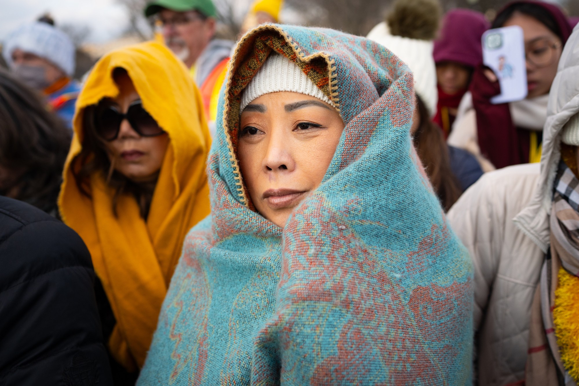 Despite the cold weather, thousands gathered in Raleigh, North Carolina, on Jan. 24, 2026, to see the Fort Worth Buddhist monks on their Walk for Peace journey. Walter Gómez | Enlace Latino NC