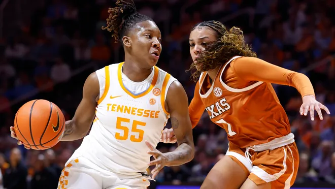 No. 4 Texas (24-3, 9-3 SEC) defeated No. 22 Tennessee (16-7, 8-3 SEC), 65-63, Sunday at Food City Center.