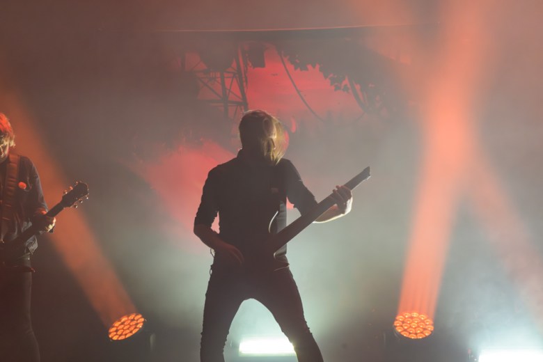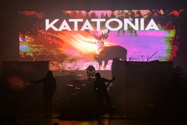 Fellow Swedes Katatonia opened Monday’s show, bringing their own varied and exploratory take on metal. Known for melding somber, almost gothic, melodies with explosive riffs, the band moved adeptly between both — and territories somewhere between — during a moody, backlit set.