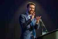 Garret Martin, vice president of the Downtown Arlington Management Corp., claps while giving a speech during the 2025 Downtown Arlington Annual Meeting on Oct. 22 at the Bluebonnet Ballroom in the University Center. Topics discussed included building on the vision for the next 10 years.