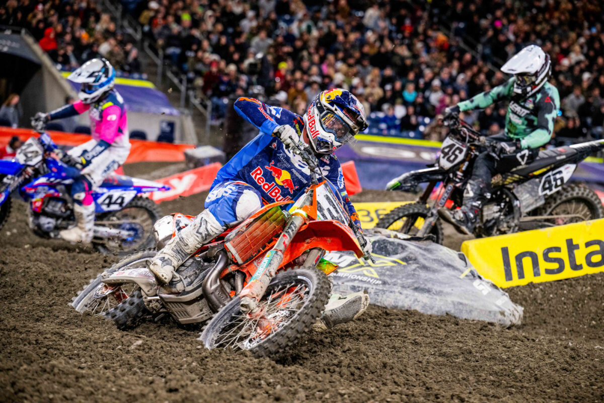 ELI TOMAC: Nabs 3rd victory of the season and moves to a single point away from the red-plated Hunter Lawrence (4th place). It was his112th SMX League victory, only 2 behind James Stewart for 2nd most all-time. He now holds 56Premier Class wins, 16 behind Jeremy McGrath for the all-time record. Tomac also made milestone SMX League start #375 and 450SX Class start #190. KTM earns milestone 450SX Class victory #75 (194 all-time SMX League wins for KTM). Additionally, Tomac tied Larry Ward and Justin Brayton for 5th on the all-time 450SX Class starts list.