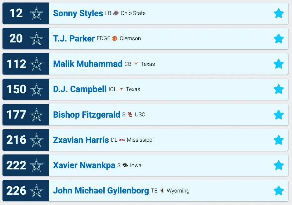 The Cowboys currently have eight picks, and they could stand pat, but day two is looking pretty thin, so I presume they look to move around. With two first-round picks, they have ammunition to make some things happen during the draft weekend.
