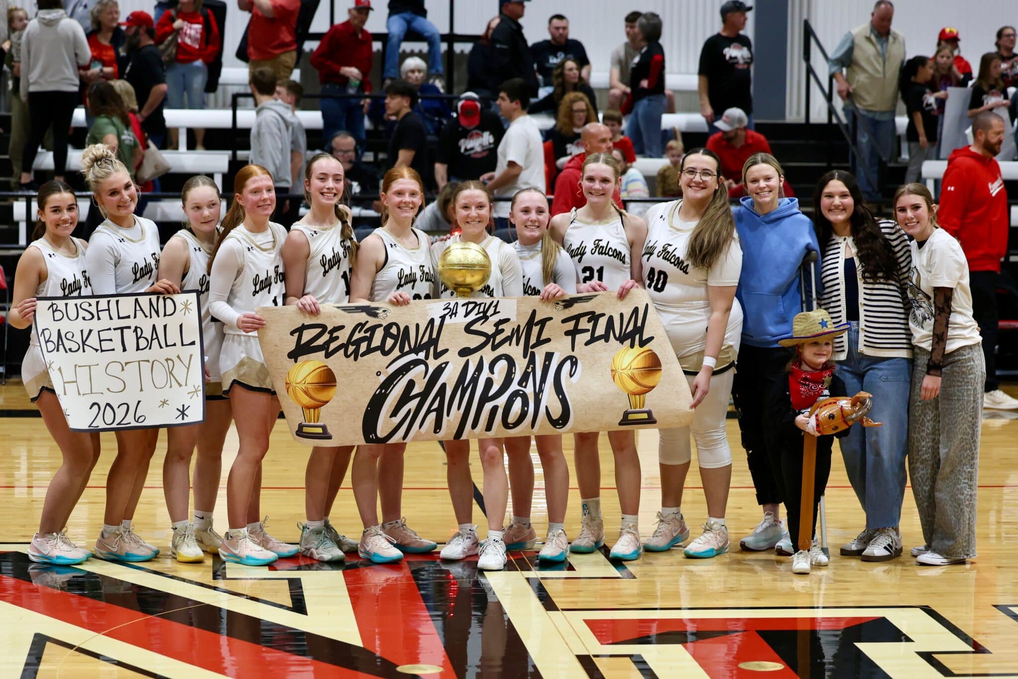 The Bushland Lady Falcons claimed the UIL Class 3A Division I regional semifinal championship with a win over Sweetwater on Monday night. [Provided photo]