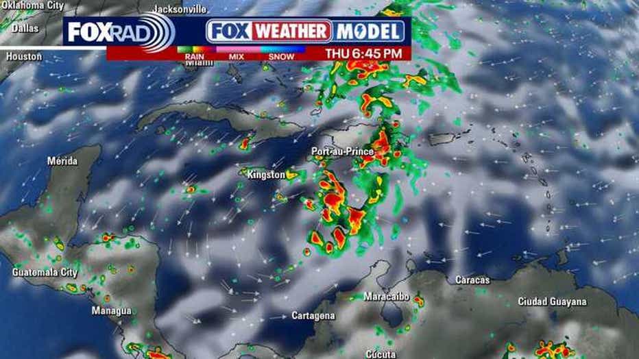 Because of its extremely slow movement, it poses a growing threat of heavy rain, flash flooding, and strong winds to Caribbean islands, including Haiti, Jamaica, and Cuba. Rainfall of 10 inches or more is possible in some areas along with hurricane force winds.Â
