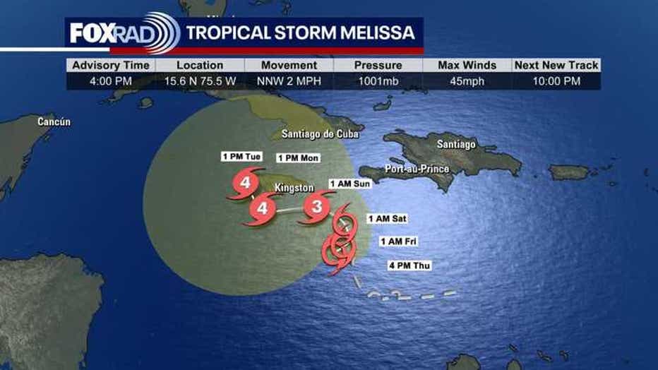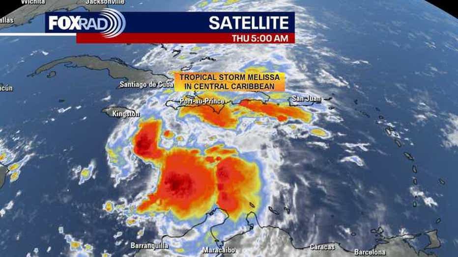 Tropical Storm Melissa still looks fairly disorganized in the Central Caribbean. But it is forecast to slowly get stronger and blow up into a major hurricane by early next week as it pushes into warmer waters and encounters less shear.Â