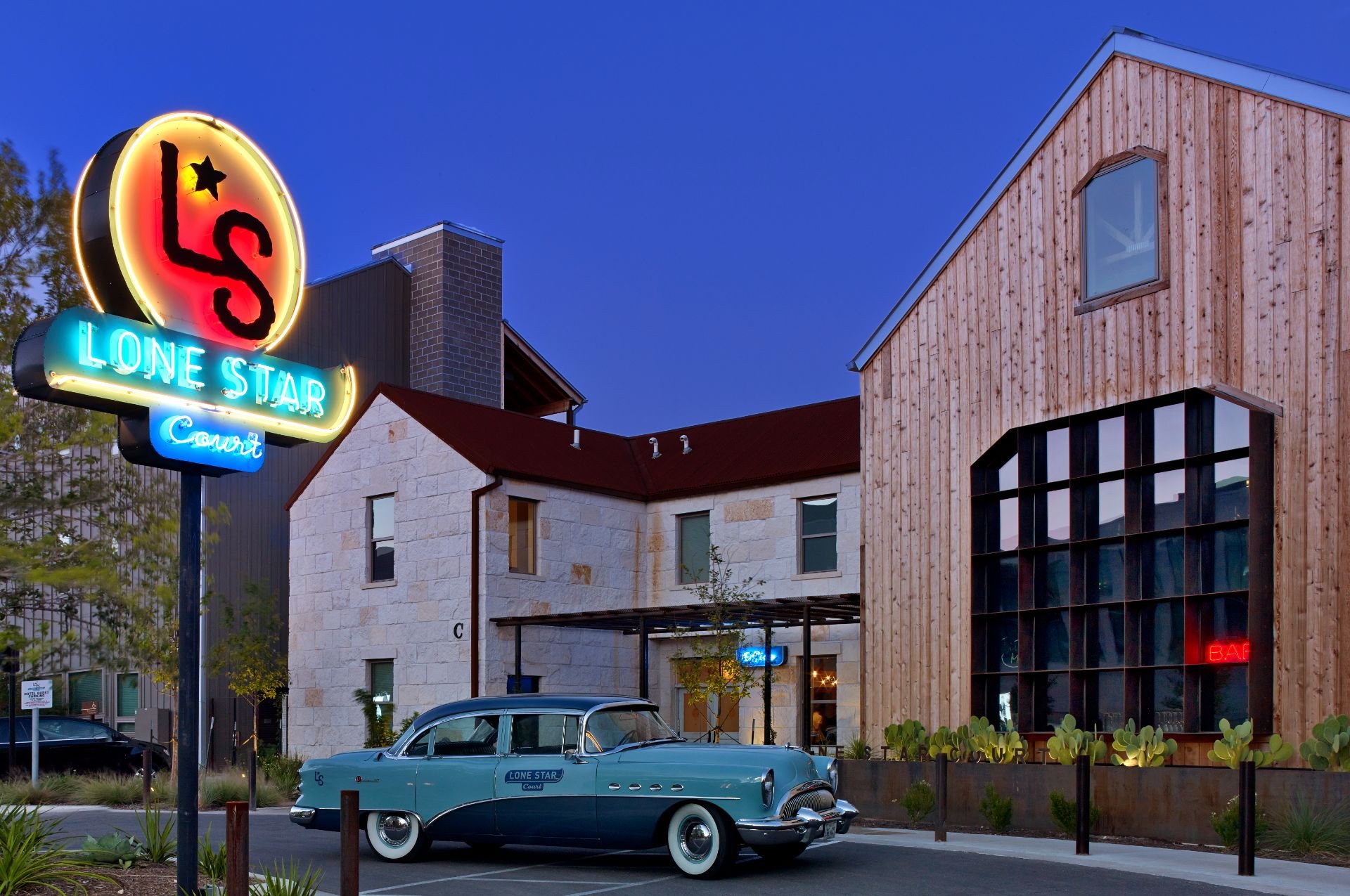 Ideal for work travelers who’ve got business in North Austin near the Domain District, but who’d love the ease of a fast trek to Central Austin to play on the weekends or after meetings,  Lone Star Court, by Valencia Hotel Collection offers a creative, casual playground with distinct Texas vibes. Playfully evoking a rural campground with its central courtyard anchored by fire pits, hangout nooks and a pool meant to summon thoughts of Central Texas’ popular spring-fed swimming holes, this hotel unfolds steps from the chic Domaine shopping complex, but feels a world apart. It’s an ideal base for the capital city’s various music festivals, marathons and more.