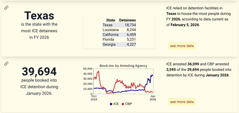 Data show that Texas has the most ICE detainees. Credit: Transactional Records Access Clearinghouse