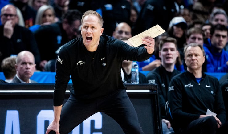 BYU head coach Kevin Young calls out to his players during a first-round college basketball game against Texas in the NCAA Tournament held at the Moda Center in Portland, Ore., on Thursday, March 19, 2026. | Isaac Hale, Deseret News