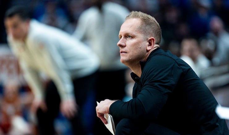 Texas head coach Sean Miller calls out to his players during a first-round college basketball game against BYU in the NCAA Tournament held at the Moda Center in Portland, Ore., on Thursday, March 19, 2026. | Isaac Hale, Deseret News