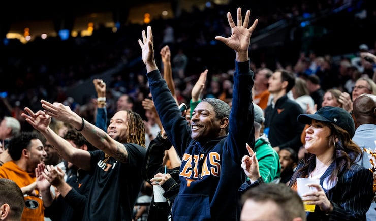 Texas fans cheer at the end of the first half during a first-round college basketball game against BYU in the NCAA Tournament held at the Moda Center in Portland, Ore., on Thursday, March 19, 2026. | Isaac Hale, Deseret News