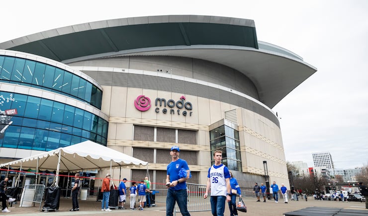 BYU fans walk by the Moda Center before a first-round college basketball game between BYU and Texas in the NCAA Tournament held in Portland, Ore., on Thursday, March 19, 2026. | Isaac Hale, Deseret News