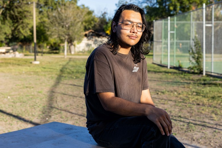 Former Soap Factory Apartments resident Luis Alvarado talked with the San Antonio Report about his housing transition after he was displaced from his unit that was located in phase one the Urban Weston Missions Baseball development on Nov. 11, 2025. Credit: Amber Esparza / San Antonio Report