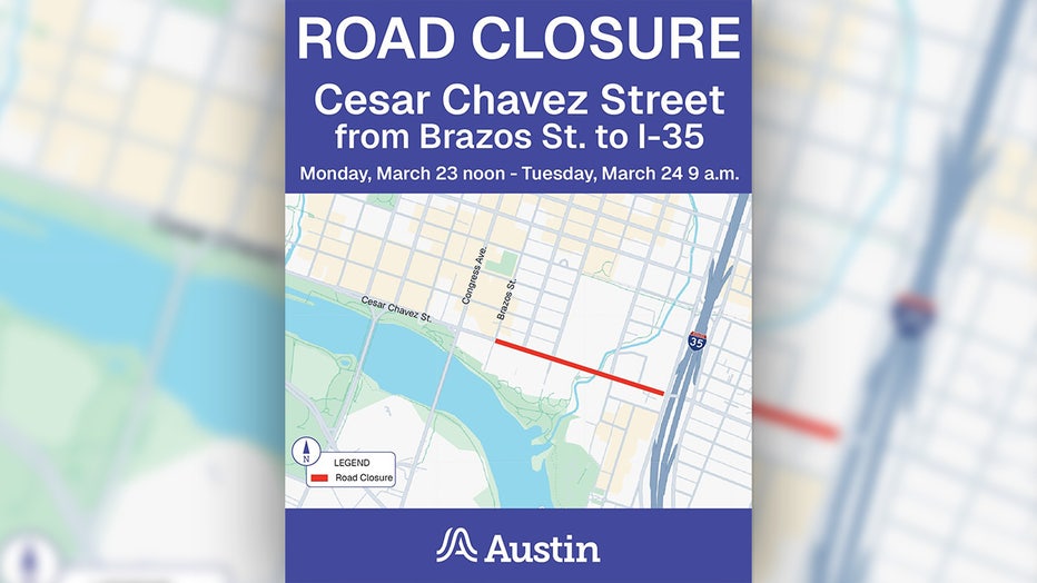 The City of Austin is reminding residents to expect traffic delays and potential street closures from the morning of Monday to the evening of Tuesday. Street closures for Monday morning are between Austin-Bergstrom International Airport and Cesar Chavez Street from Red River to Brazos streets. The street closures around Cesar Chavez Street are expected to last overnight.