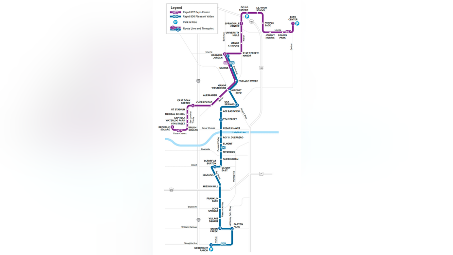 The increase in Rapid lines 800 and 837 also coincides with two new Park & Ride facilities: Goodnight Ranch in Southeast Austin and Expo Center in Northeast Austin.