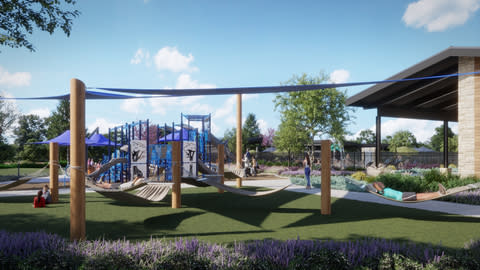 Upon arrival, residents and guests will be greeted by Whispering Grove, a beautifully landscaped two-acre entrance park coming this summer to the community. This serene space will further establish a unique sense of place through a fine-art sculpture, “Scout’s Tree,” created by nationally recognized Dallas-based artist team Brad Oldham and Christy Coltrin. The 35-foot-tall placemaking artwork reflects the neighborhood’s natural beauty and honors the site’s history as a former tree farm. Crafted from stainless steel and cor-ten steel, the sculpture captures attention upon arrival and glows at night through integrated lighting. Surrounded by walking trails and a reflection pond, this immersive art piece will serve as a unique and inspiring focal point.