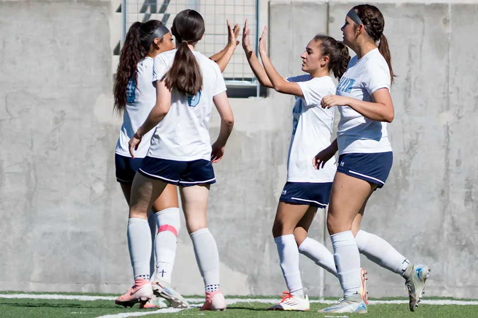 Chapin players celebrate a goal against Americas during a Class 5A Division I girls soccer playoff game Thursday, March 19, 2026, at SAC 2 in El Paso, Texas.