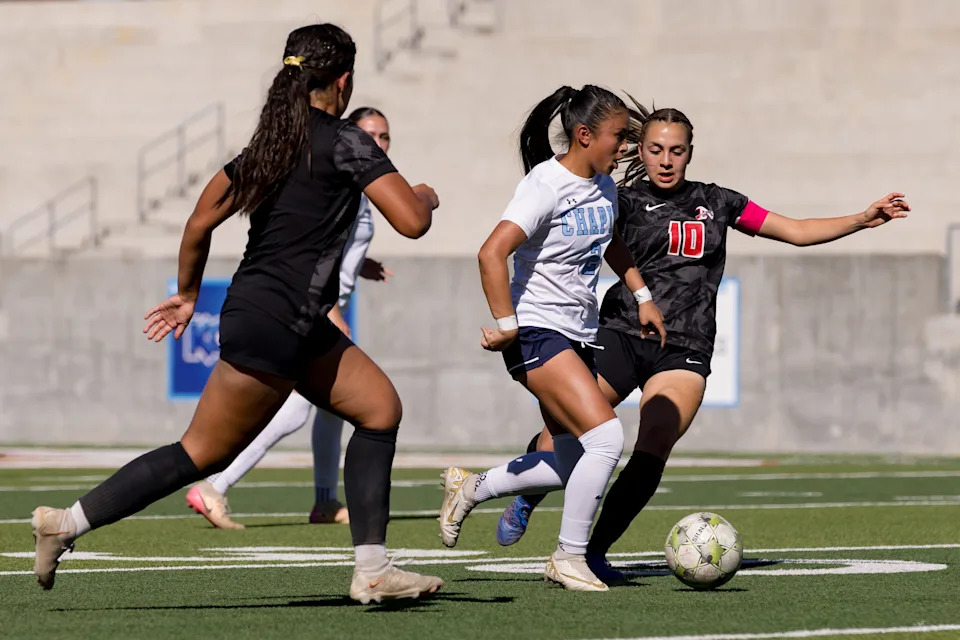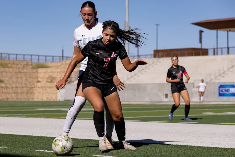 Americas scores the game-winning goal in overtime to defeat Chapin 3-2 during a Class 5A Division I girls soccer playoff game on Thursday, March 19, 2026, at SAC 2 in El Paso, Texas.