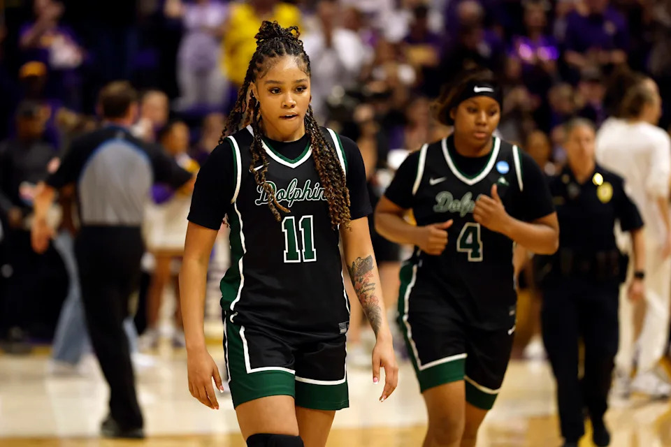 Bailey Burns #11 of the Jacksonville Dolphins exits the court after the game against the LSU Tigers in first round of the 2026 NCAA Women’s Basketball Tournament at Pete Maravich Assembly Center on March 20, 2026 in Baton Rouge, Louisiana.