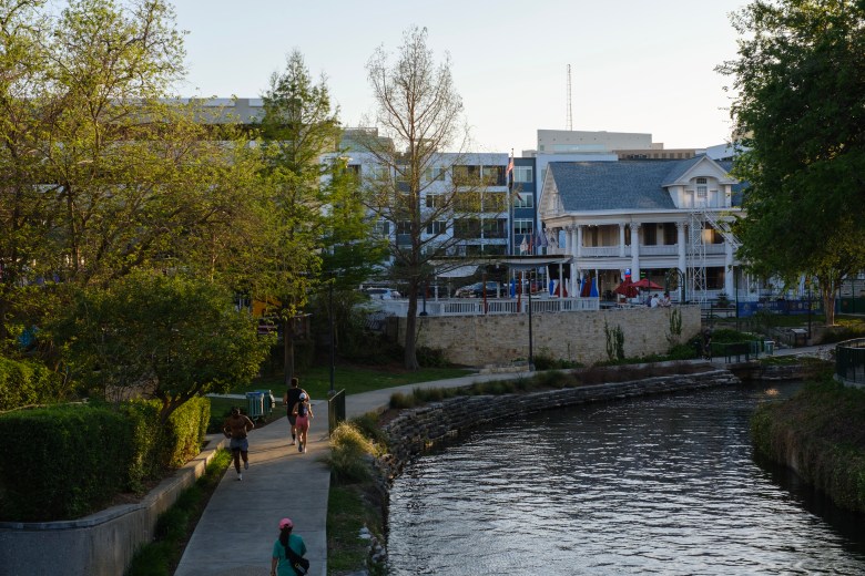 People run along the Museum Reach area of the San Antonio River Walk. Credit: Clint Datchuk for the San Antonio Report