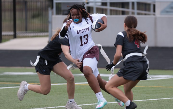 Action from Week 1 of the Dallas Cowboys’ Austin Region girls flag football league on Saturday, March 28, 2026 at Burger Stadium in Austin, Texas. (Michael Adams/Austin Sports Journal)