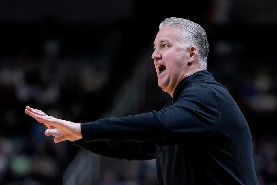 Head coach Matt Painter of the Purdue Boilermakers reacts against the Texas Longhorns during the first half in the Sweet Sixteen of the 2026 NCAA Men’s Basketball Tournament at SAP Center on March 26, 2026 in San Jose, California. (Photo by Thearon W. Henderson/Getty Images)