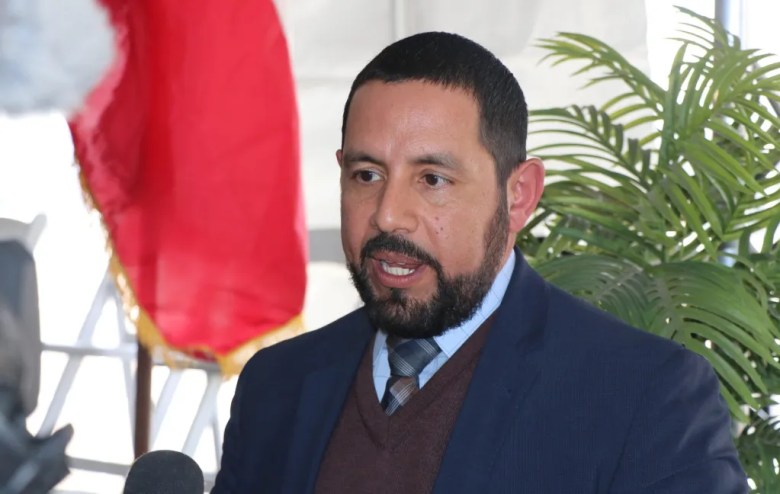 Gilbert Trejo, El Paso Water’s vice president of engineering, operations and technical services, speaks with reporters at the groundbreaking of the utility’s Advanced Water Purification Plant on February 27, 2025. (Diego Mendoza-Moyers / El Paso Matters)