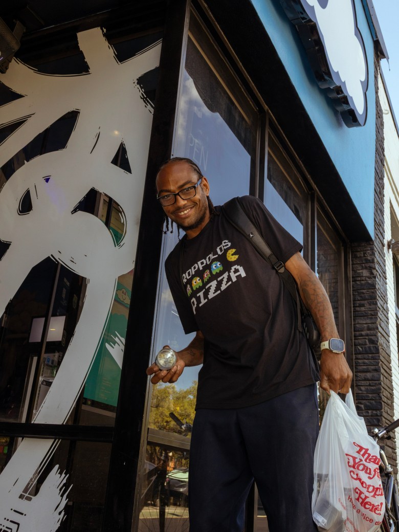 Ellis poses for a portrait after purchasing smokeable hemp-derived THCA products the day before Texas bans the sale of them.