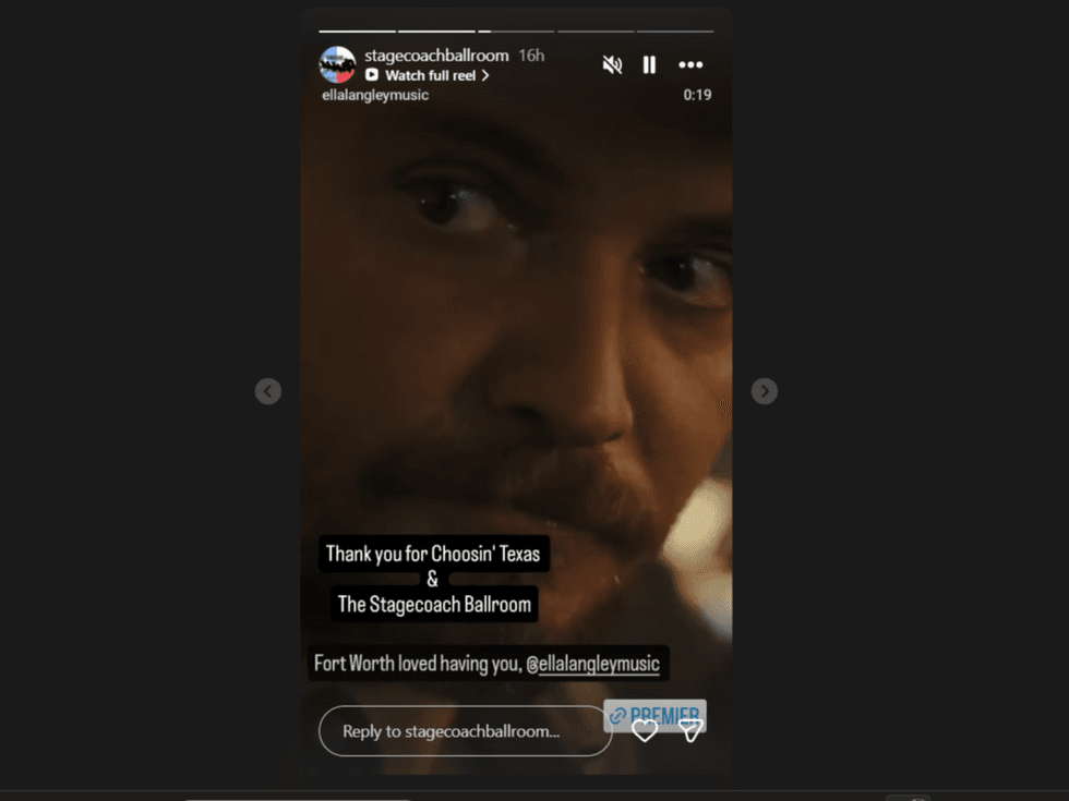 “Thank you for Choosin’ Texas & The Stagecoach Ballroom. Fort Worth loved having you, @ellalangley,” the venue posted in an Instagram story on April 1, along with a screen shot of the IHeart Radio article.