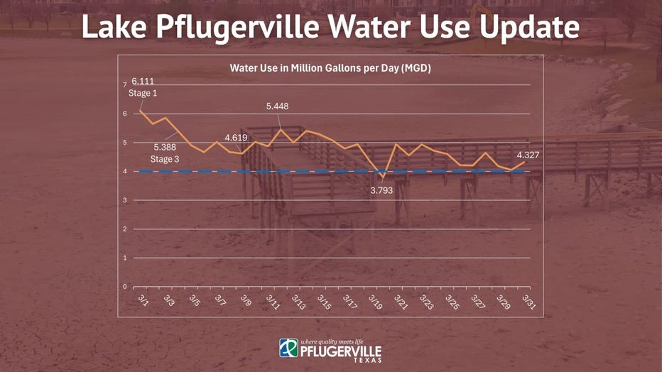 On March 31, the city’s use sat at 4.327 MGD. Only once did the city drop below the stated goal; on March 20, the city’s usage sat at 3.793 MGD.