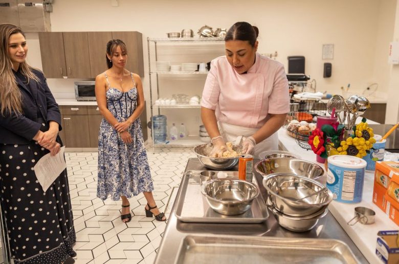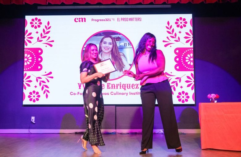 Yvonne Enriquez, left, co-founder of the Texas Culinary Institute, receives her 2026 ChangeMakers: Borderland Women in the Arts award, Thursday, March 26, 2026. (Photos by Liliana Chavez)
